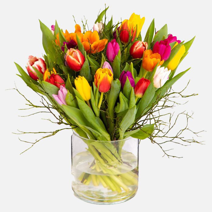 Tulpenboeket in gemende kleuren naar voorraad .